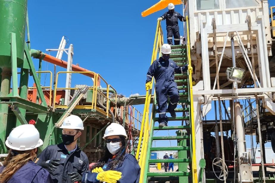 La secretaria de Energía, Andrea Confini, junto a representantes de la empresa Vista Oil & Gas, recorrió el área Medanito, donde la compañía inició actividades de perforación que emplearán a cerca de 180 personas durante los próximos tres meses.