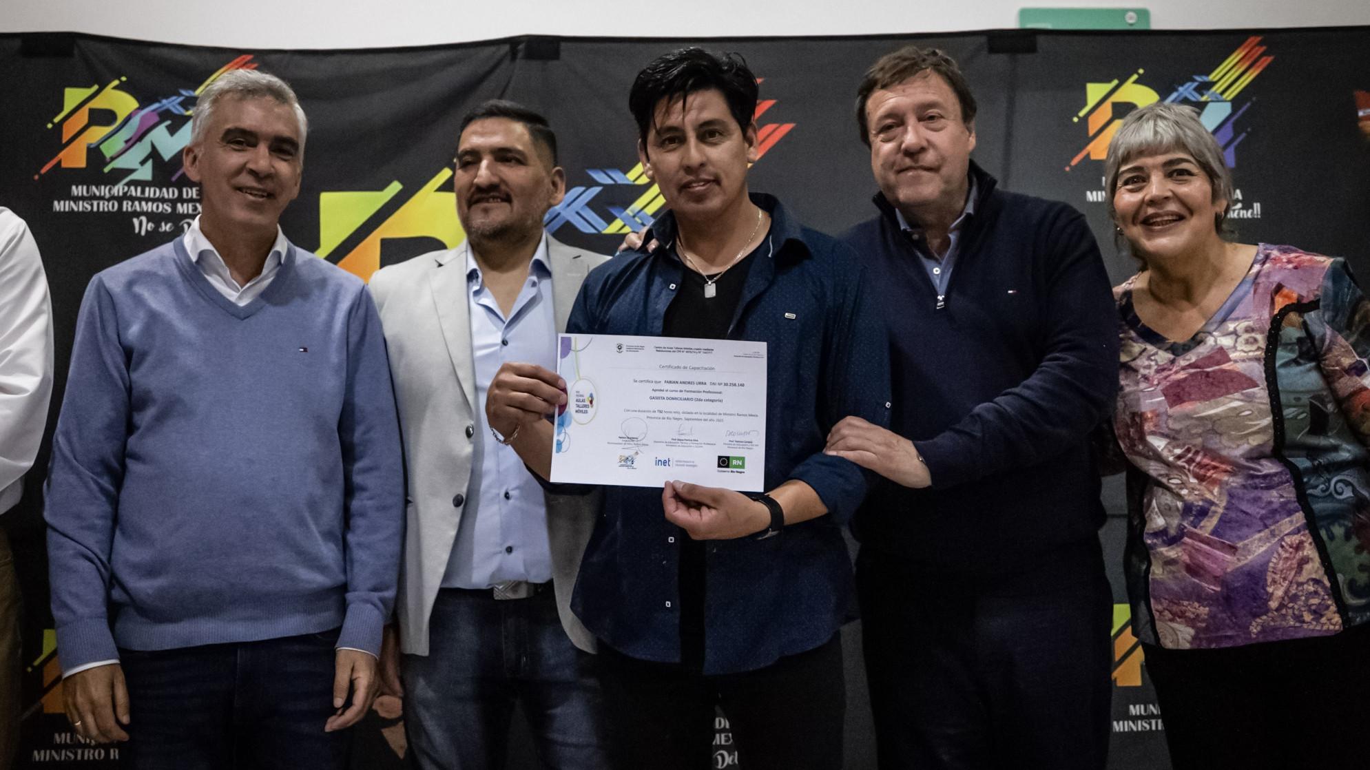 El Gobernador Alberto Weretilneck, acompañado por el Intendente Nelson Quinteros, encabezó la apertura de sobres para ampliar de la red de gas de Ramos Mexía, que permitirá sumar 131 familias al servicio y transformar su calidad de vida. Además, se entregaron certificados a los egresados del curso de formación profesional en Gasista Domiciliario, generando mano de obra calificada y local, y seis familias cumplieron el sueño de tener su vivienda propia.